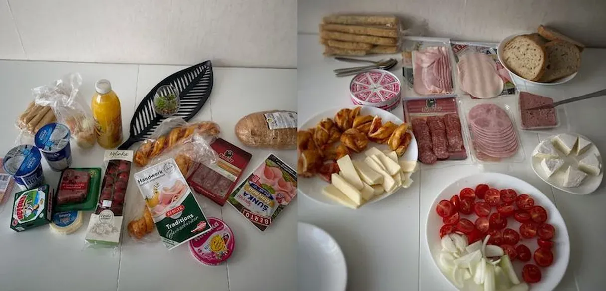 The other choice you have, especially if you are on a budget, is to go to any supermarket, buy some local cheese and meat and prepare a homemade breakfast at your accommodation. I do believe that we paid around 8 euro per person for the supermarket groceries.