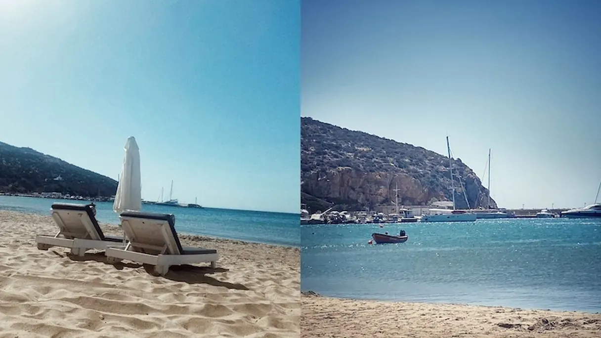 Even though Kamares is not necessarily the it-place for dining out, it still has one of the best Sifnos beaches. It is small, cozy, with clear blue waters and lovely beach bars. The vibe is totally chill, with no loud music that could ruin your vibes. And that is why we spent most of our beach days here.