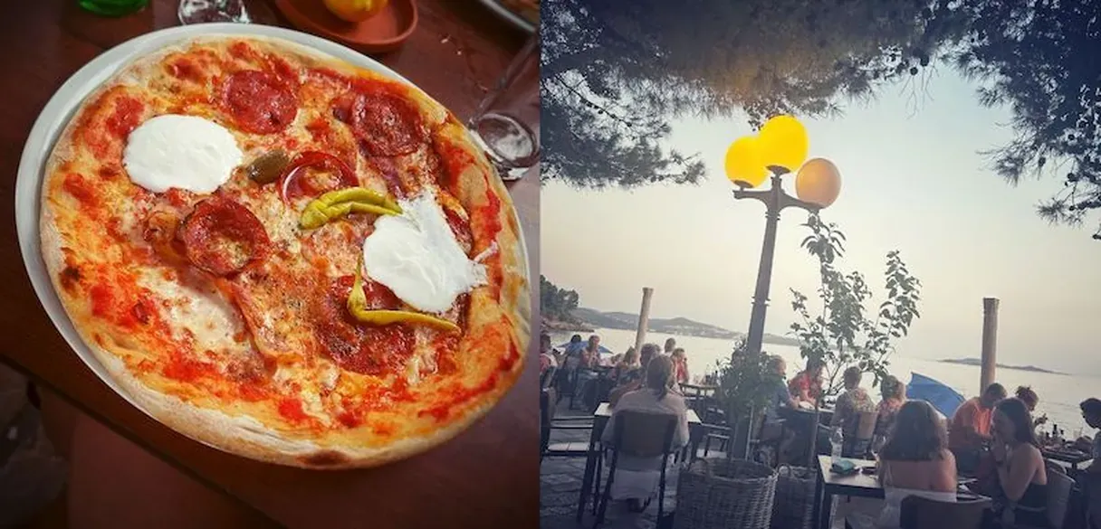 Now, if you are on a budget but want to eat something good in a lively atmosphere, I might suggest Basilico. It's also in the village's center, and it has very good food and more than reasonable prices. A big pizza is around 10 euros.