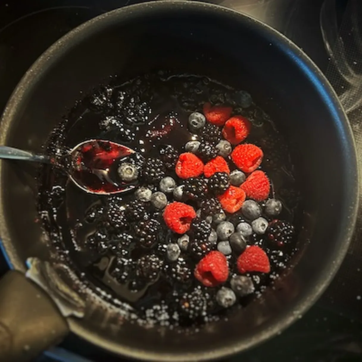 - Remove from heat, add the remaining berries, and stir to combine.