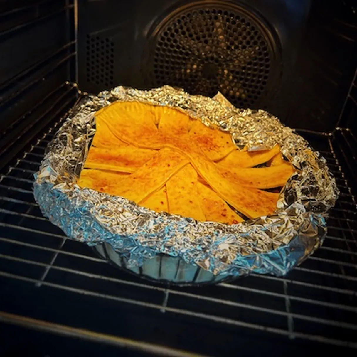 - To prevent the edges from burning, cover them with aluminum foil.