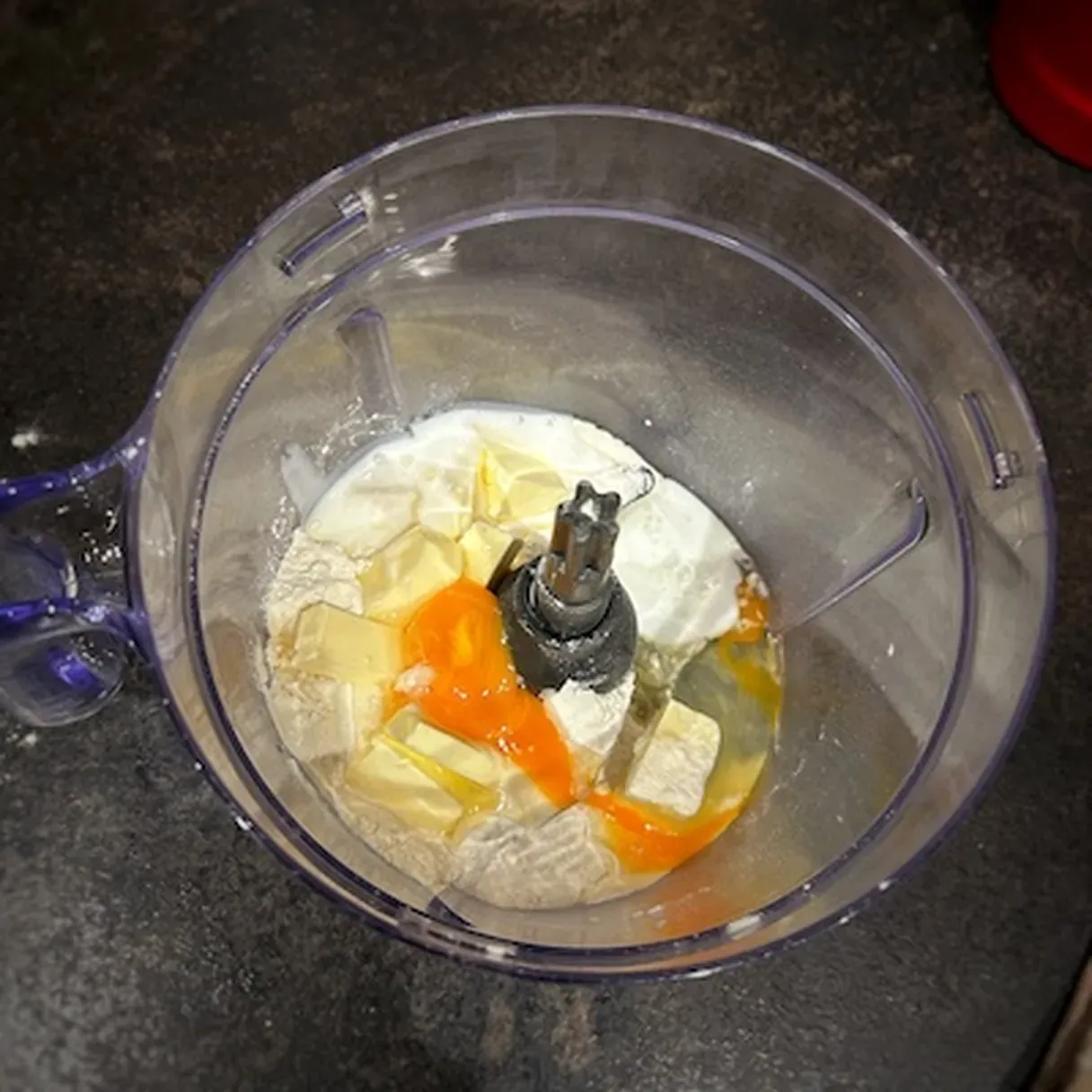 - In a food processor, combine flour, cold butter, one egg, and buttermilk.