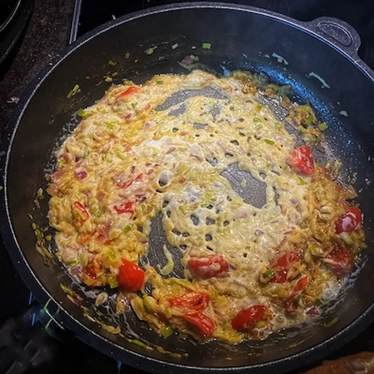 - Leave everything to cook for 1-2 minutes, then reduce the heat to low.