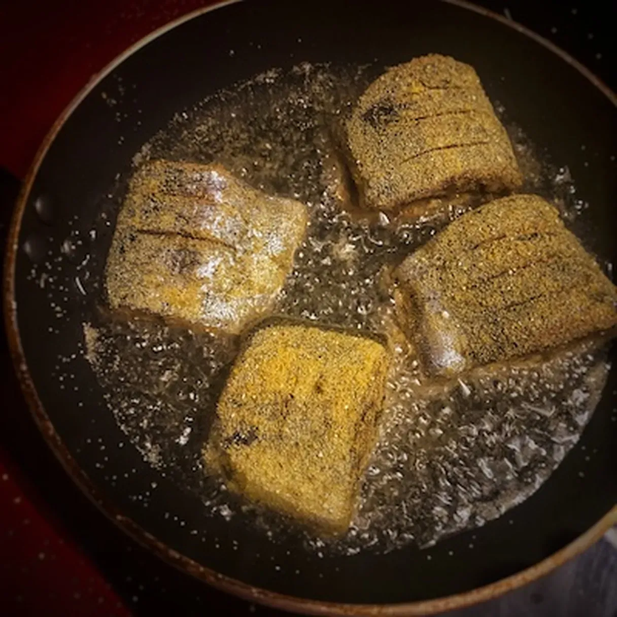 - Add the fish to the pan, and deep fry them for 3-4 minutes on each side or until they have a golden color.