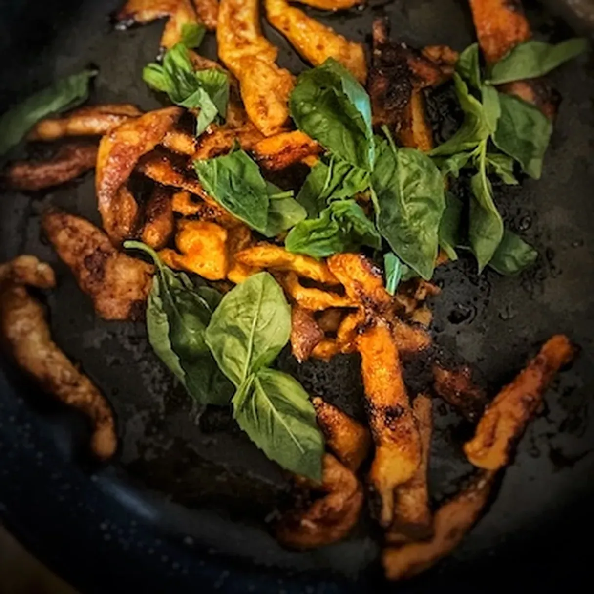 - When done, take the skillet off the heat and bring in the basil. Stir to combine and let it rest until you are ready to serve.