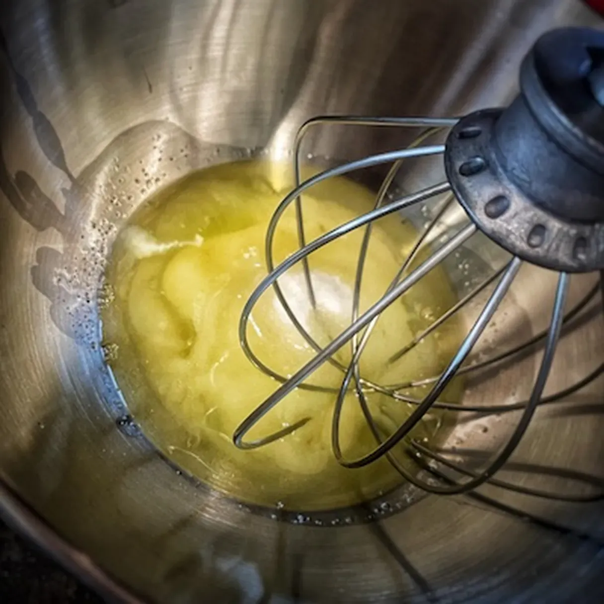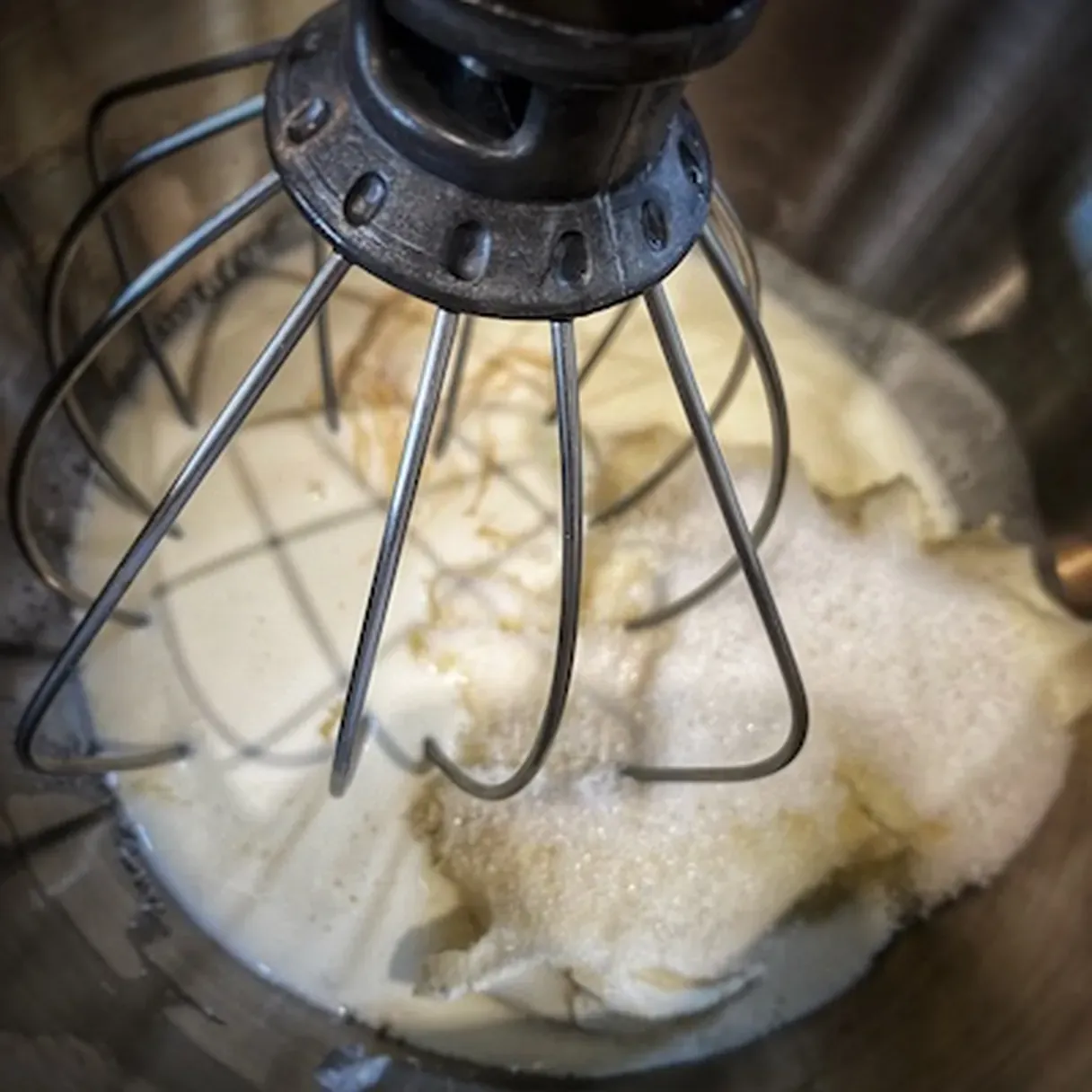 - Start whisking at high speed until you get nice and firm peaks.