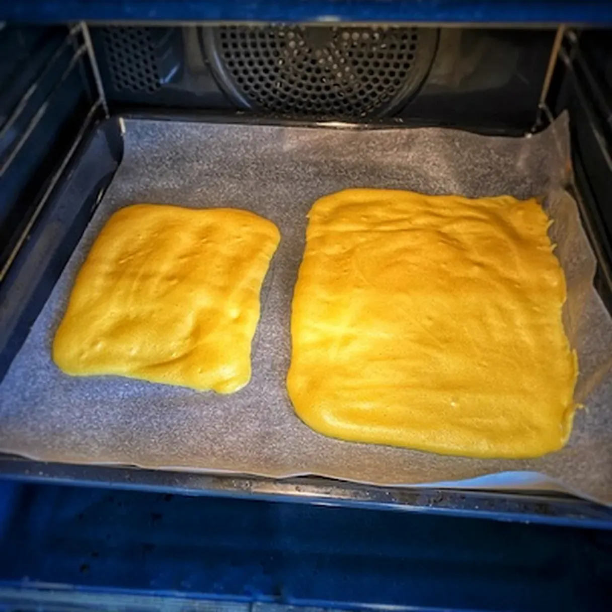 - Line a baking tray with parchment paper. Using a crayon, draw the form of the casserole you will use to store the tiramisu. Now, if you are more talented with a piping bag than me (which is not hard since I am a mess), use one to nicely transfer the dough to the prepared tray. However, if by using a piping bag, you end up having your composition all over yourself and not on the tray, just use a spoon and spread the dough/cream as evenly as possible.
