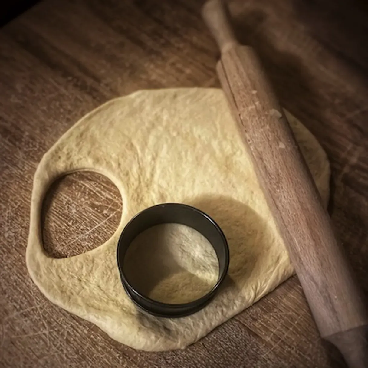 - Take out the cut rings and place them on a cornmeal surface. Cover and let them sit for another 2 hours.