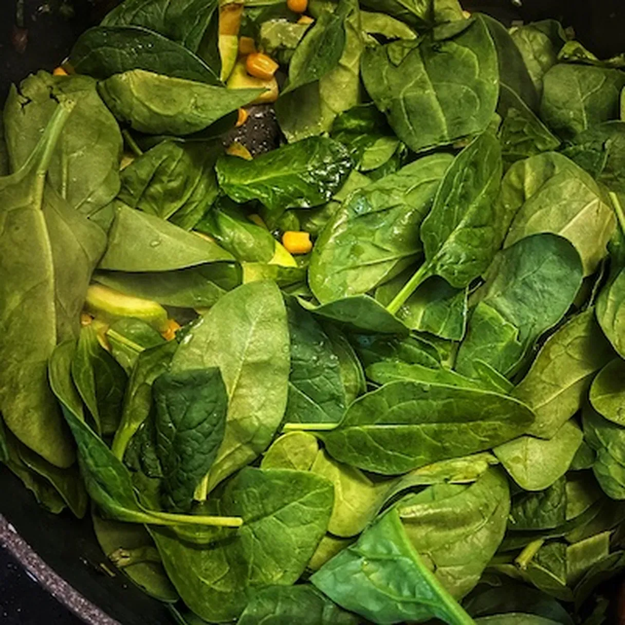- It's time to add the baby spinach. I suggest doing it in batches as it will need space. However, in just 30 seconds, it will lower in size, and you will be able to add another batch.