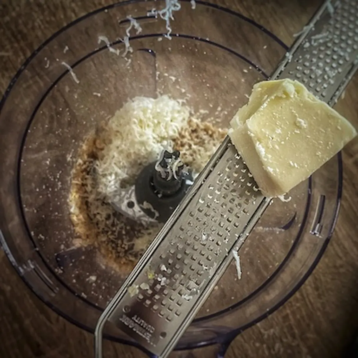 - Grate the parmesan cheese in there and pulse some more.