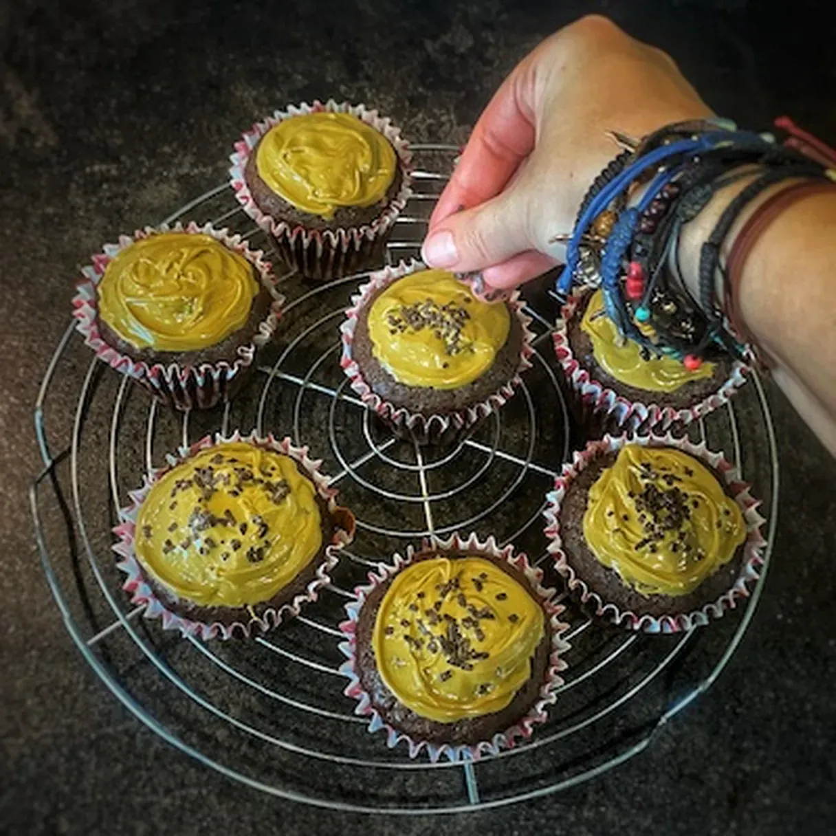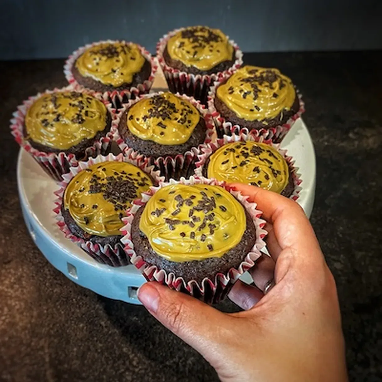 - Finally, spread a tbsp of pistachio cream on each cupcake and sprinkle whatever you want on them.