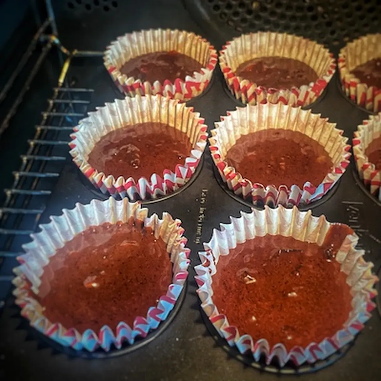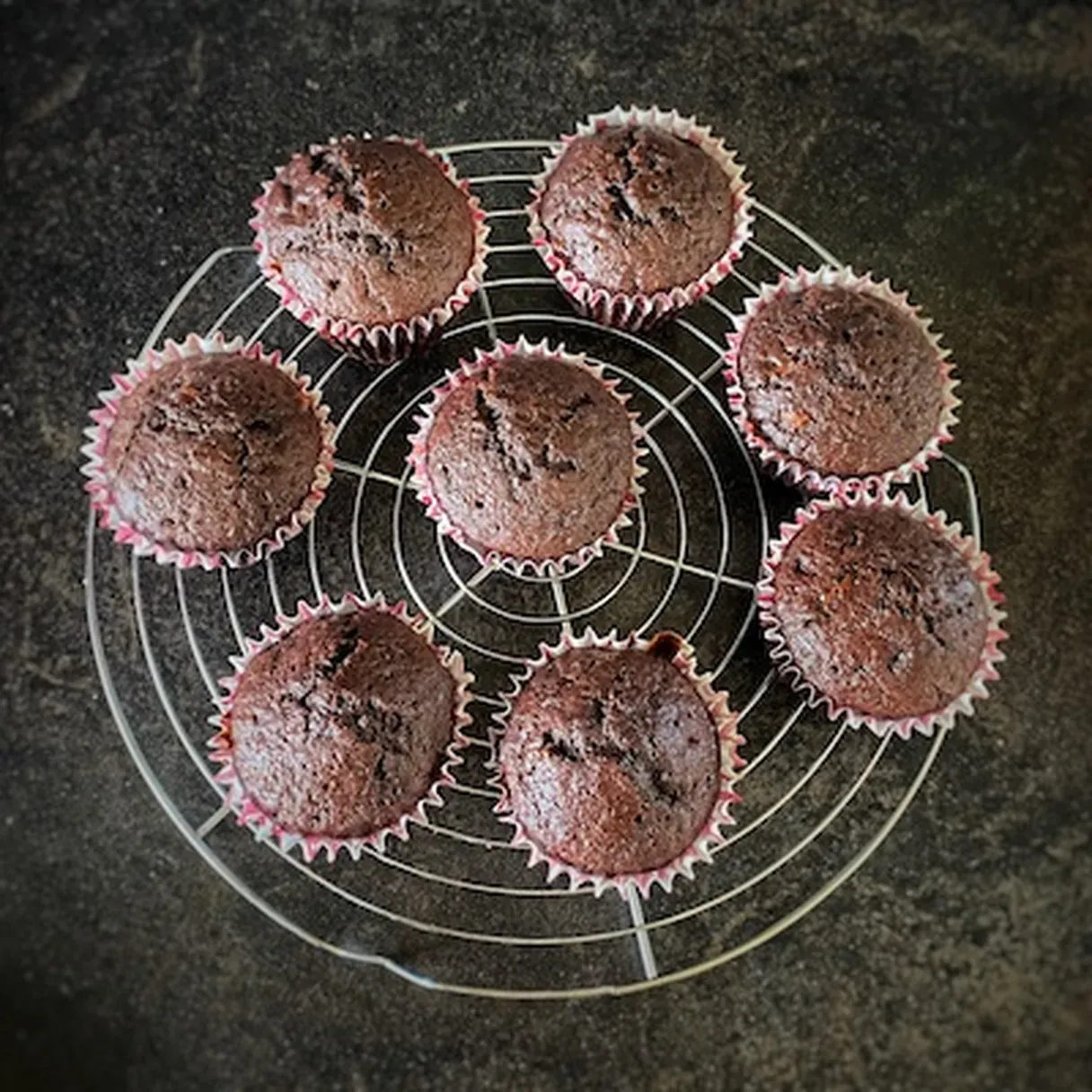 - Grease the tray with some cooking oil and arrange the muffin paper cups. Depending on the size of your cups, you will end with 8 or 12 of these homemade chocolate cupcakes.