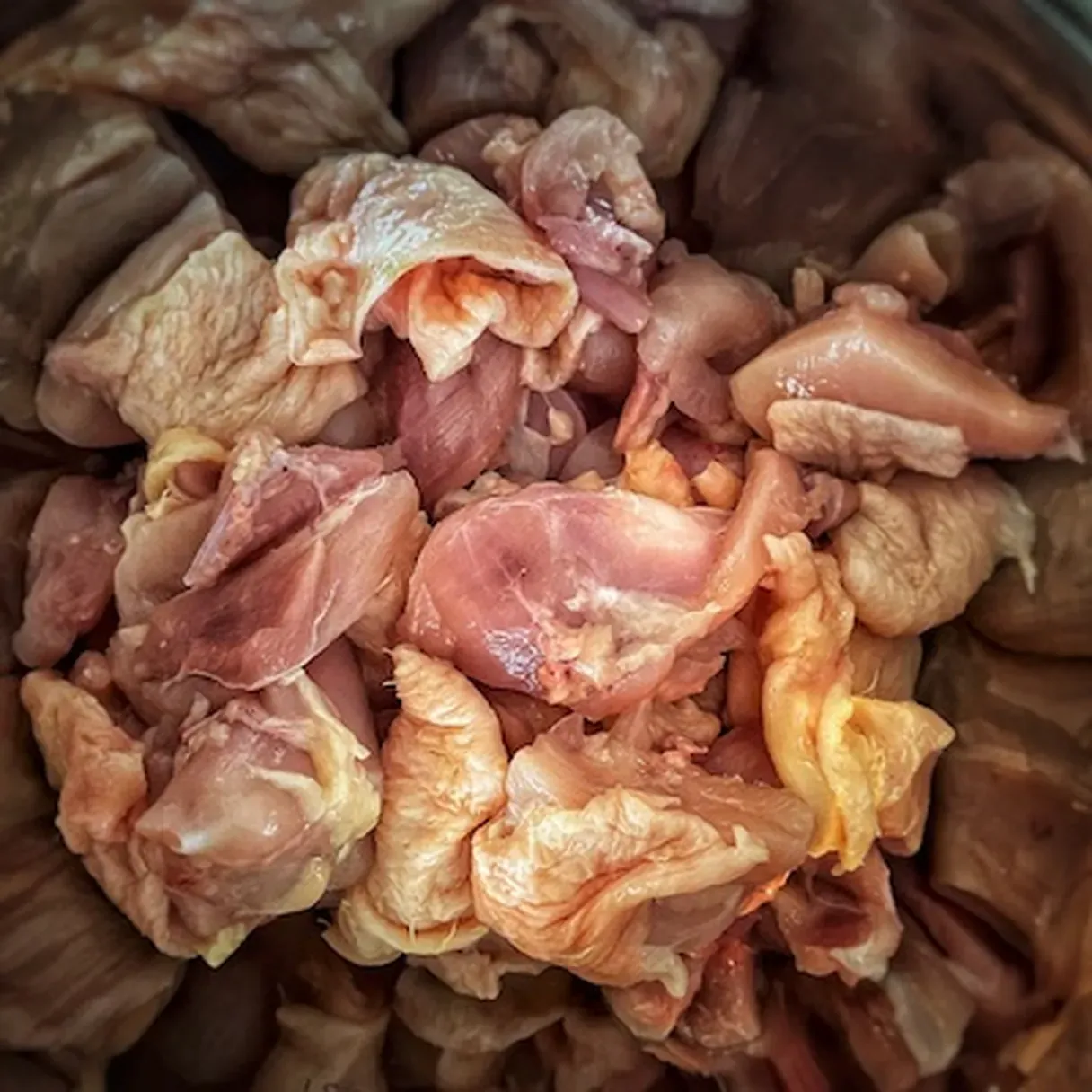- This being said, chop the thighs into 2-3 cm pieces and place them into a bowl.