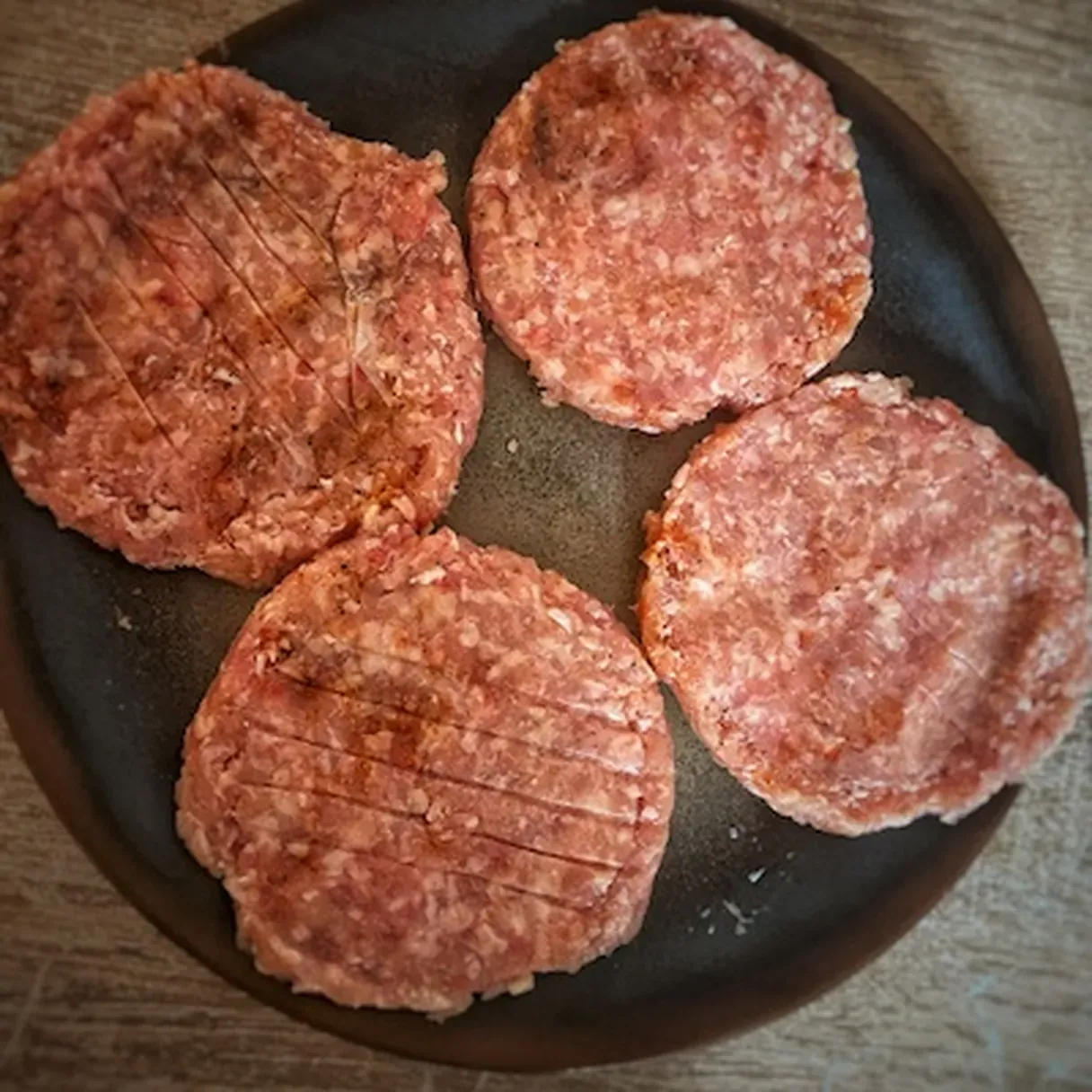 - Using the burger press, form 4 burger patties. Place them on a plate and let them sit in the fridge for another hour or so.