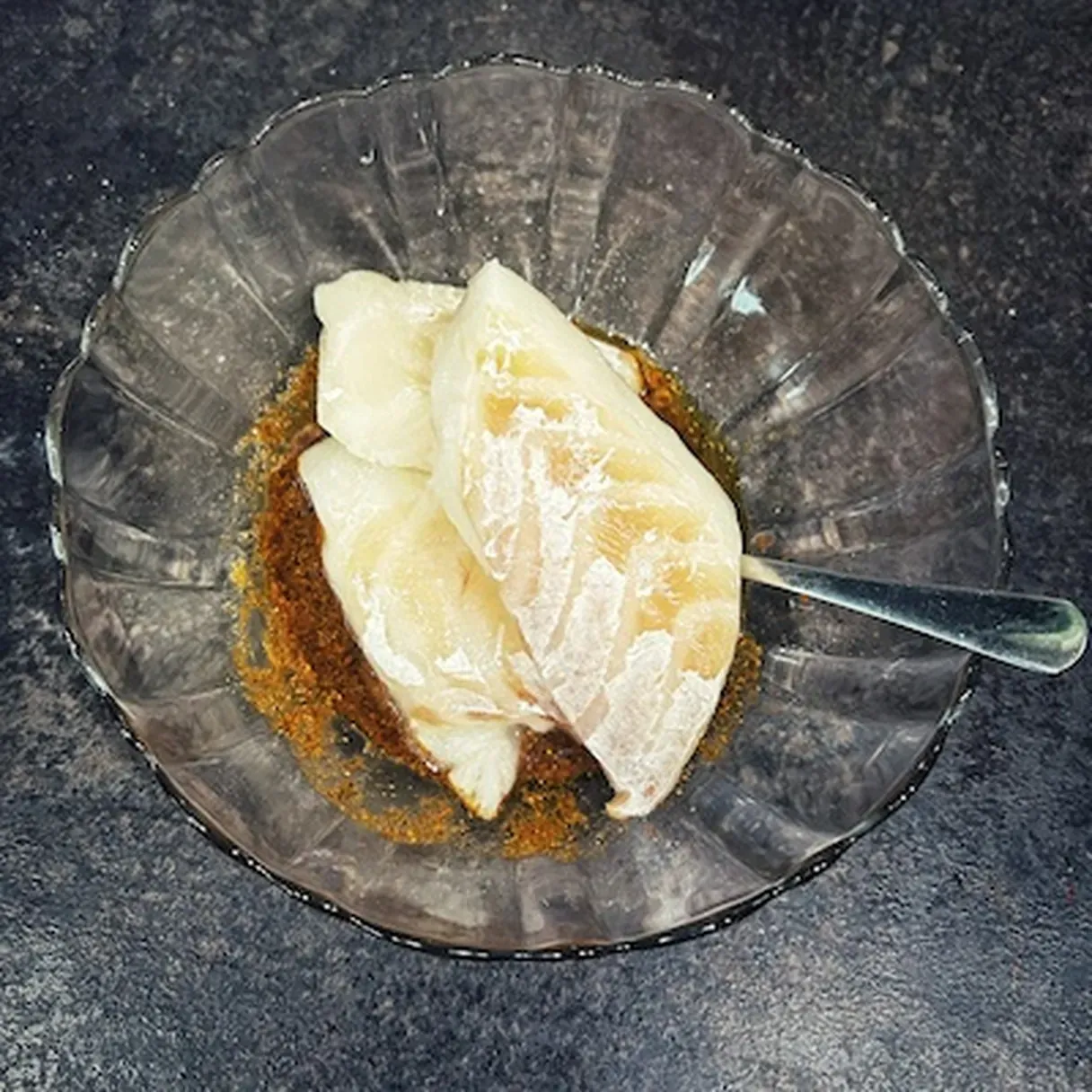 - In a large bowl, mix together the lemon juice, 1 tsp of ras el hanut, ginger, 1 tsp cumin, 1 tsp coriander, 1 tsp paprika, salt and black pepper, and 2 tablespoons of olive oil. Add the cod fillets and coat them in the marinade.