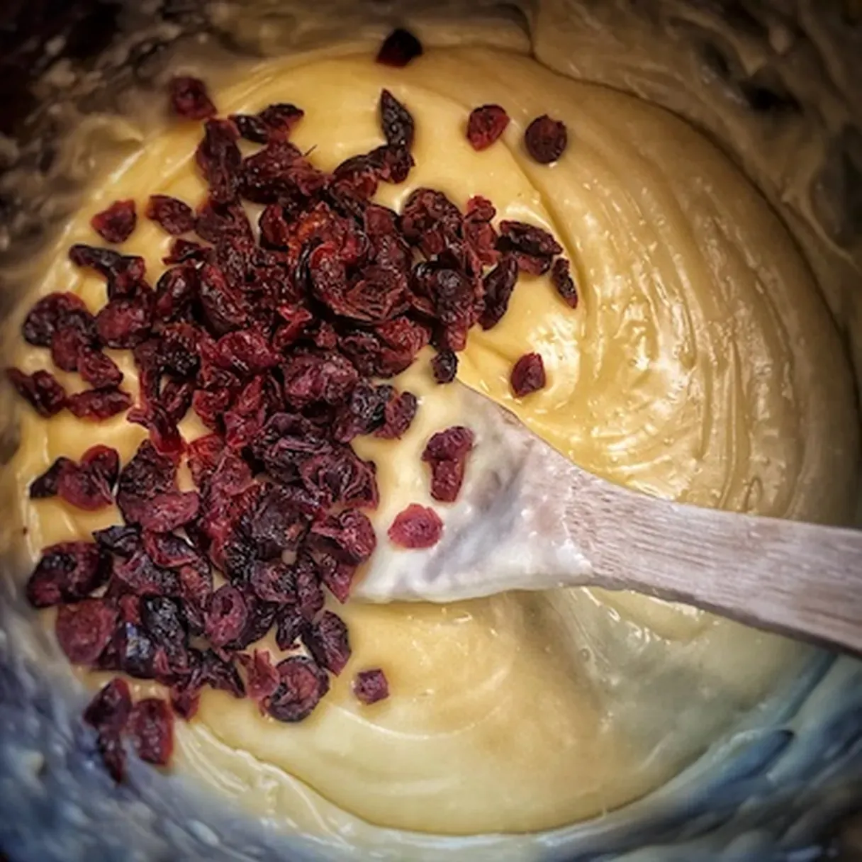 - When the chocolate is melted, add the candied cranberries and stir to combine.