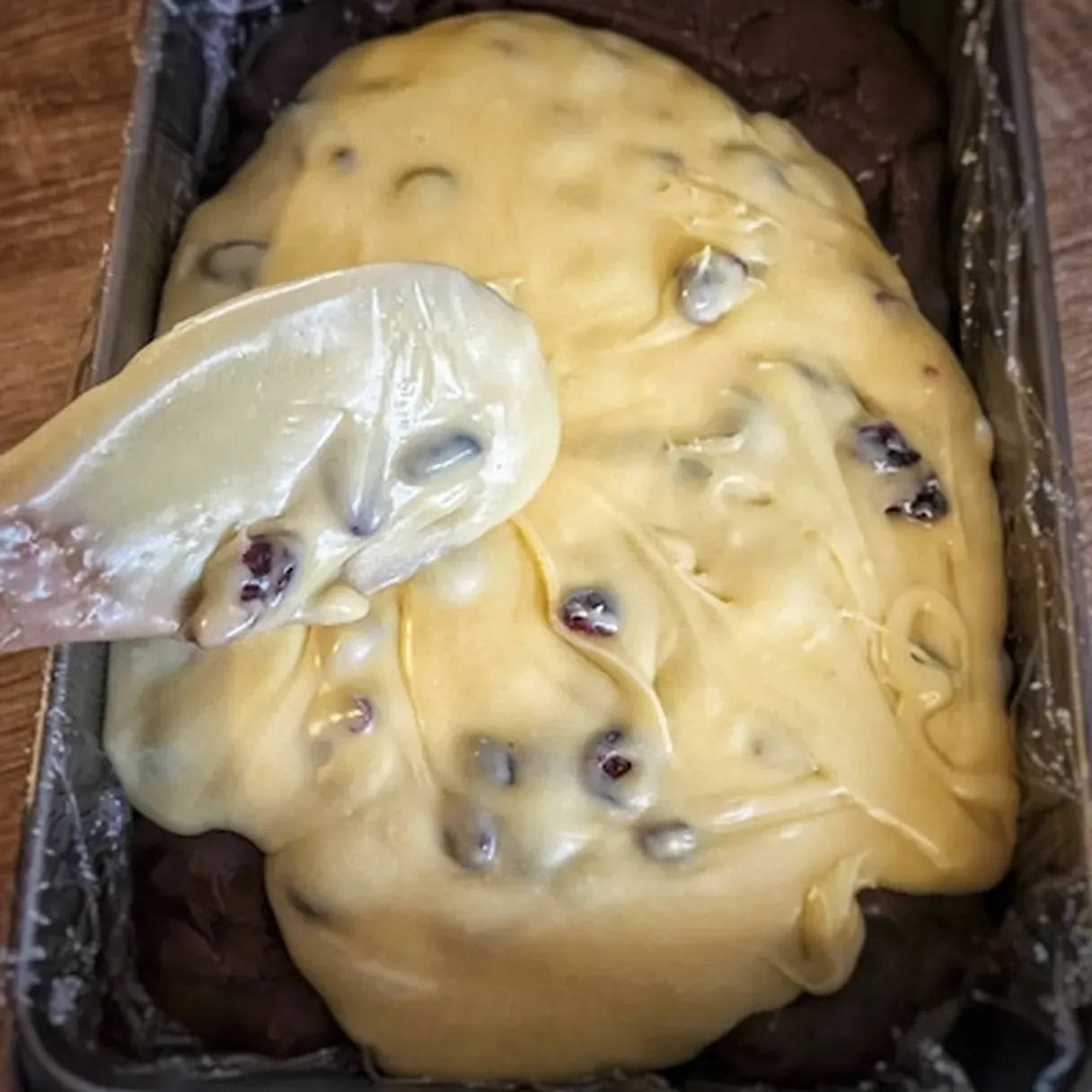 - Pour the chocolate mixture into the prepared tray and leave it in a cold place until you finish the other layer.