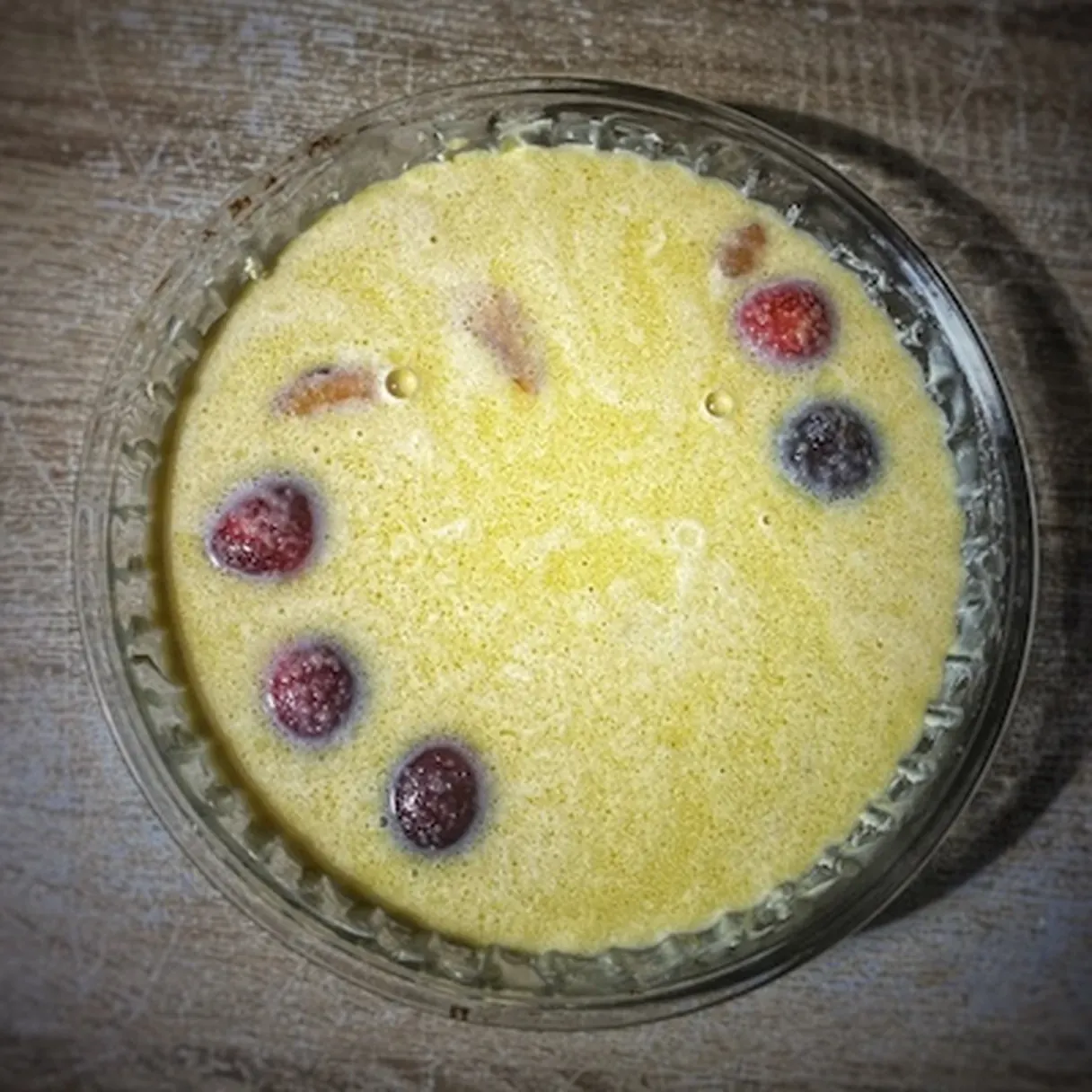 - Gently pour the batter on top of your plums.