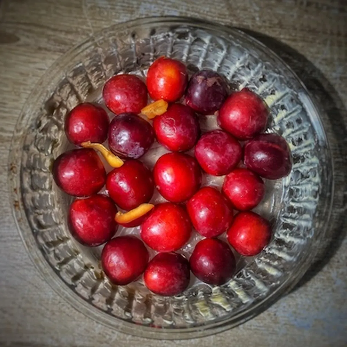 - Wash your plums, cut them into halves, and take the stone out. Place them face down on the greased dish. Try to fill all the space, but don't overcrowd things in there.