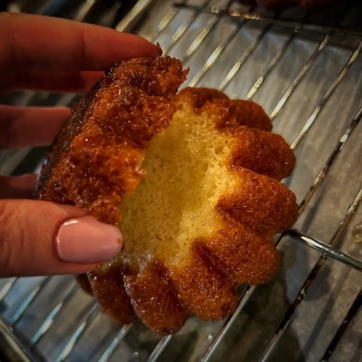 - Allow the savarines to cool at room temperature for 15-20 minutes before removing them from the molds and letting them cool completely on a wire rack.