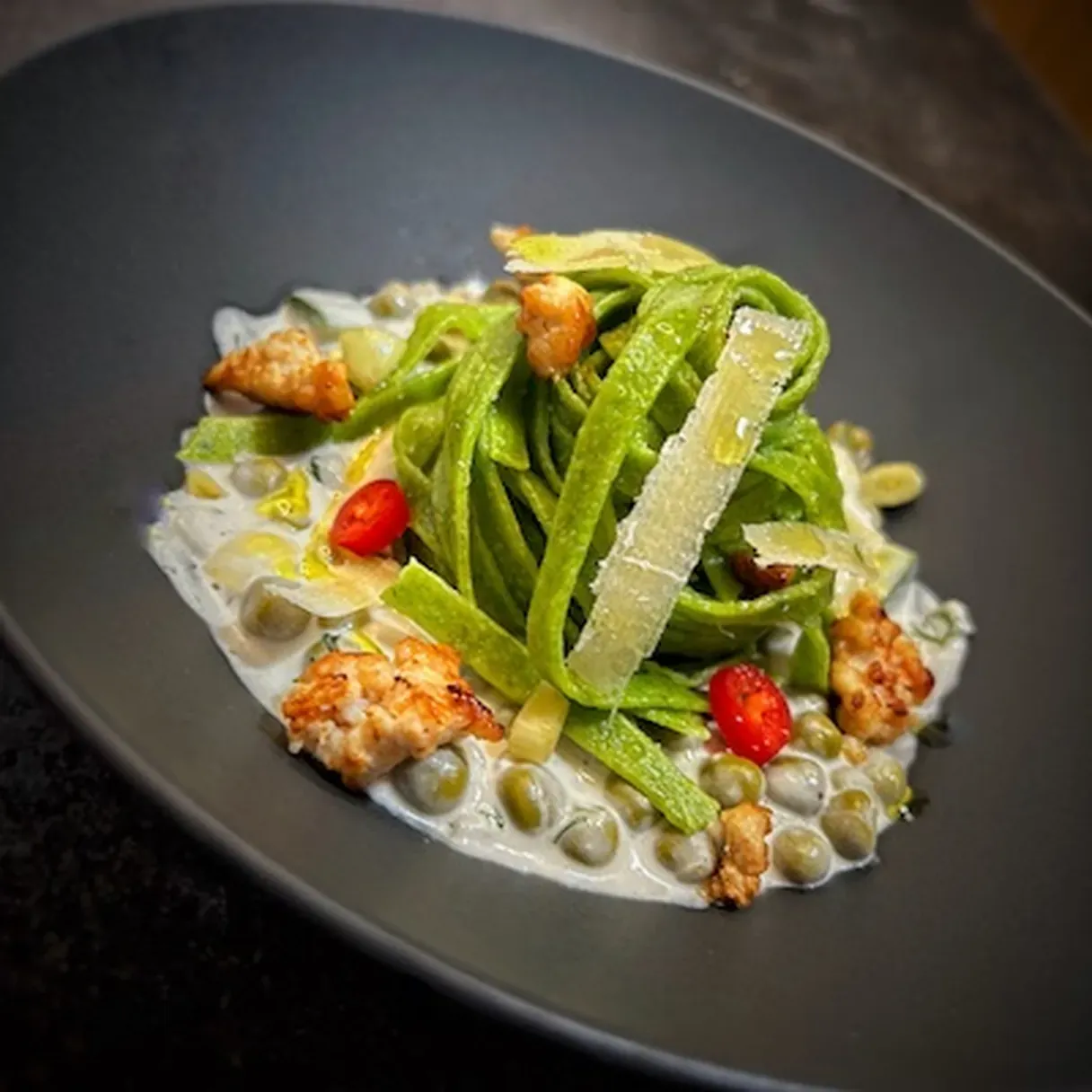 - Fresh chili and pickled garlic for garnish