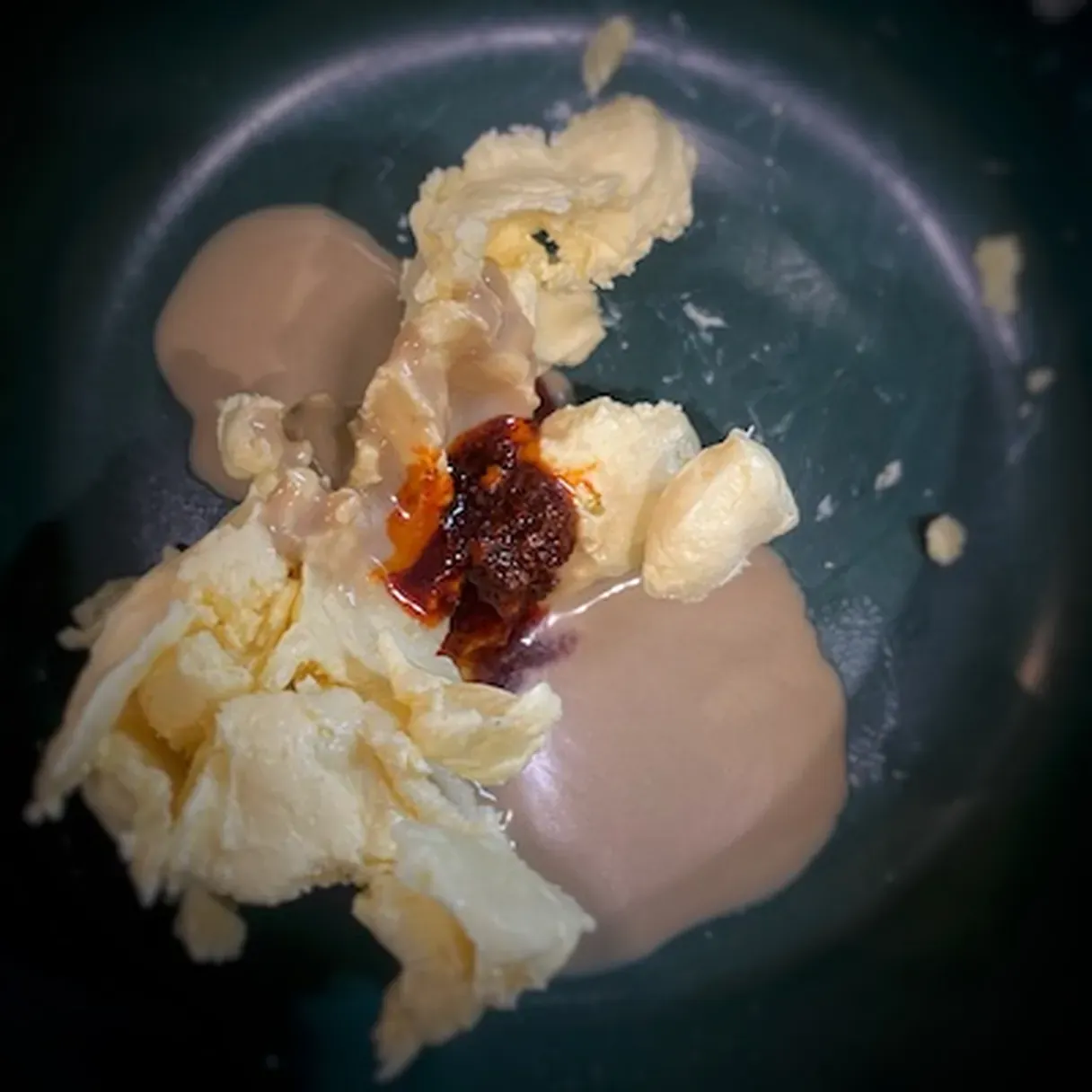 - When this happens, pour the rice cream and the spices and mix to combine. Take off heat and set aside to rest.