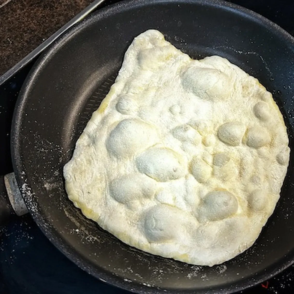 - Flip it and cook it for another minute. Take it out and repeat the process with the other piece of dough.