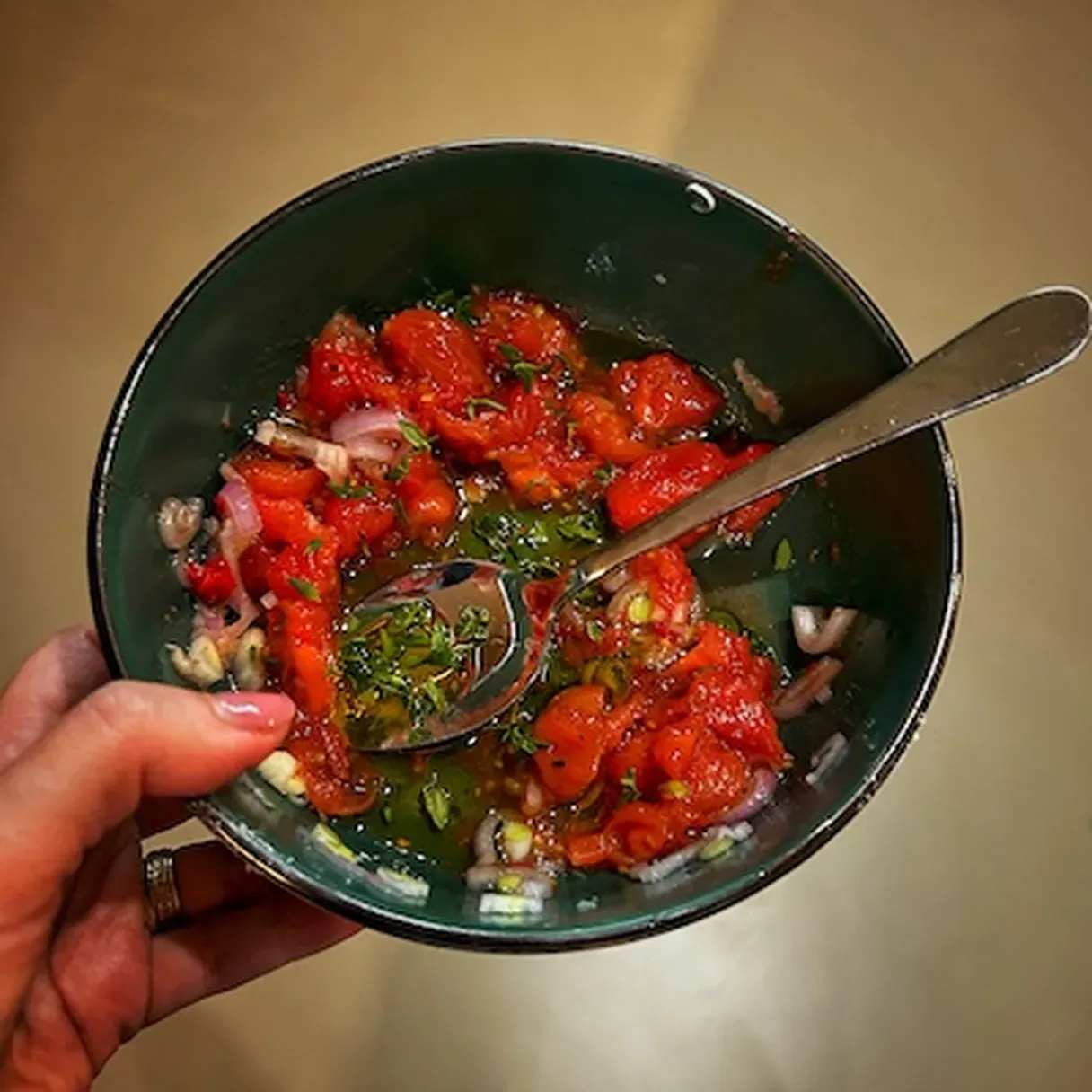 - Add them to a bowl, along with as much or as little hot pepper as you like and salt. Massage them (maybe use a glove) to help the ingredients release all their flavors. Add the lemon juice, olive oil, and thyme. Stir to combine.