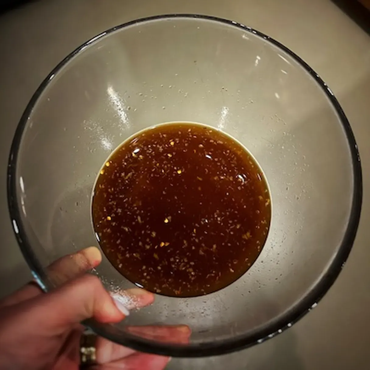 A: Combine pineapple juice, soy sauce, brown sugar, garlic, ginger, and chili flakes.