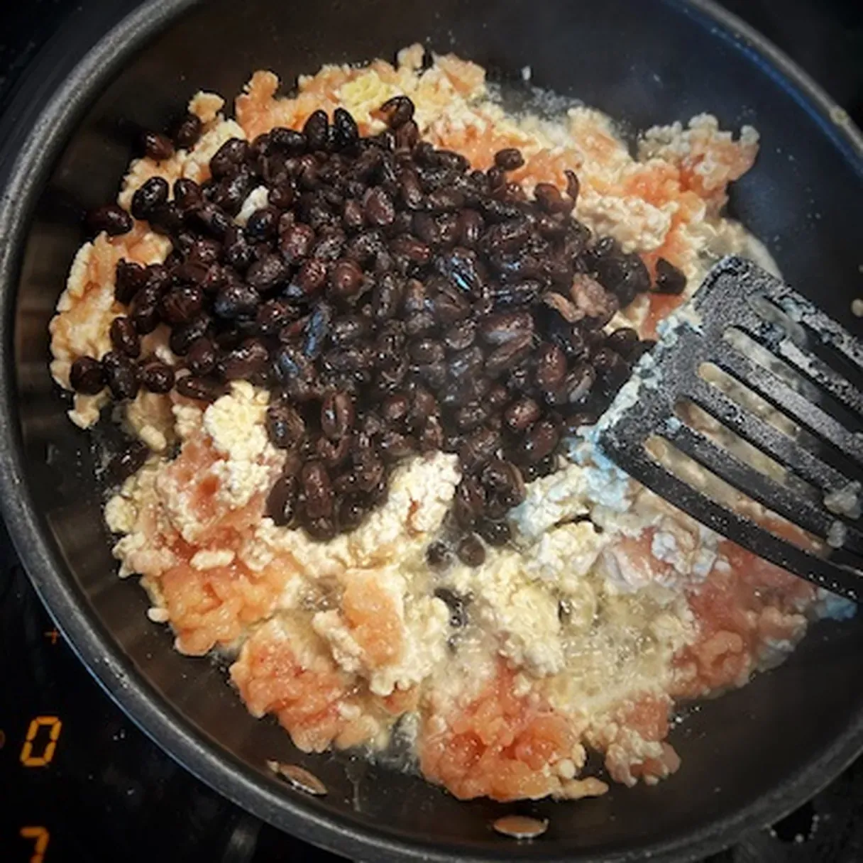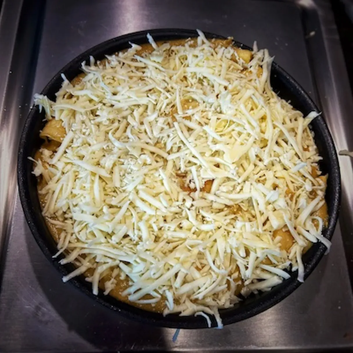 - Mix in the cashew sauce or cream along with 2 tbsp of the green enchilada sauce and 100g shredded cheddar.