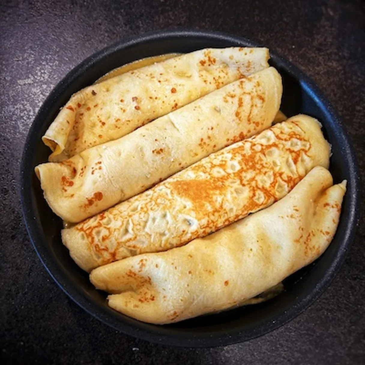 This will yield about 6-7 crepes. Cover with a tea towel and let them rest.