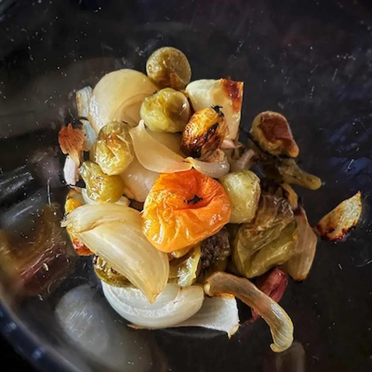 - Once roasted, transfer all the veggies into a bowl, sprinkle with salt, and cover for 10-15 minutes.